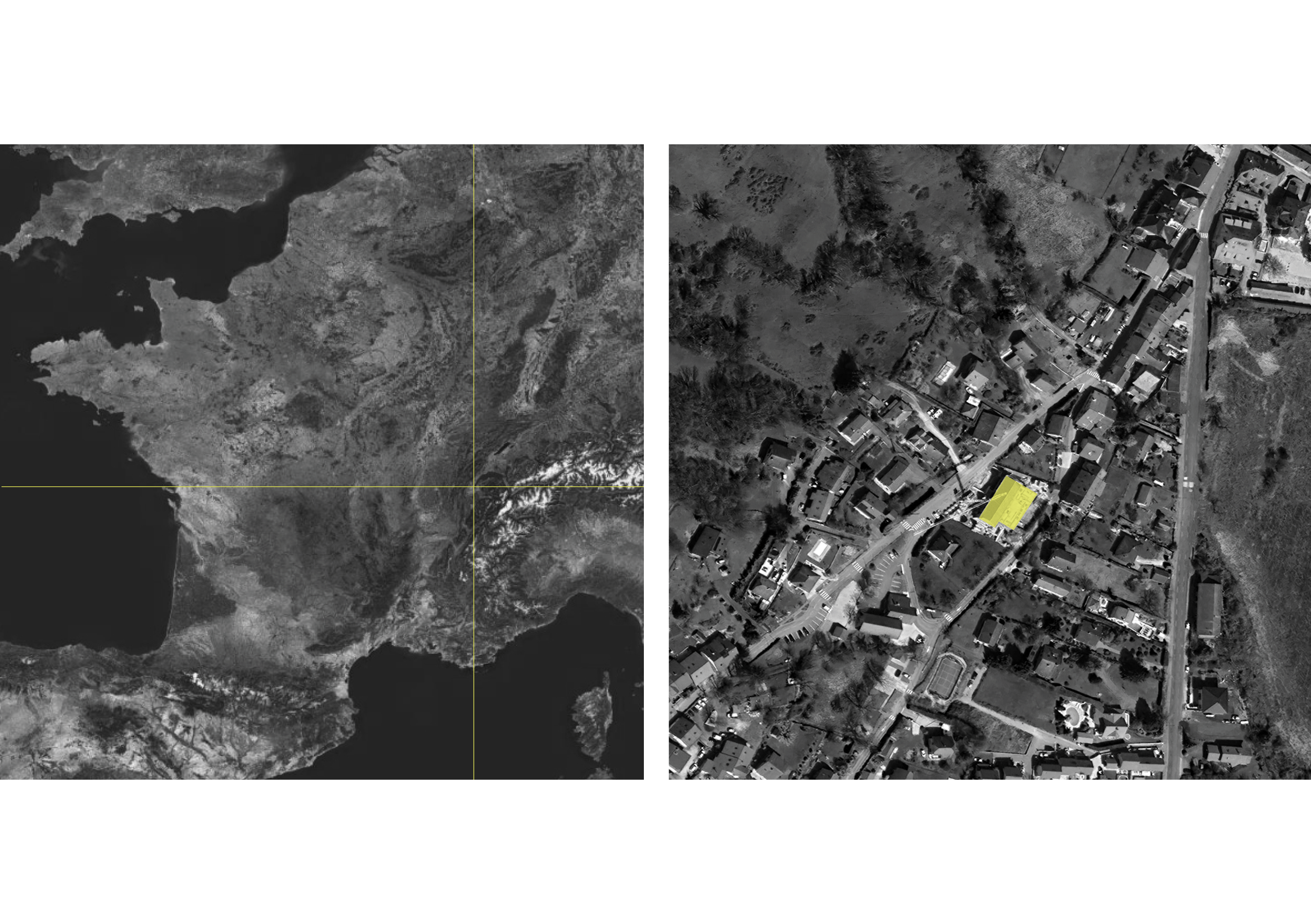 Les deux parties distinctes qui composent le bâtiment s’insèrent dans le paysage et le tissu villageois.