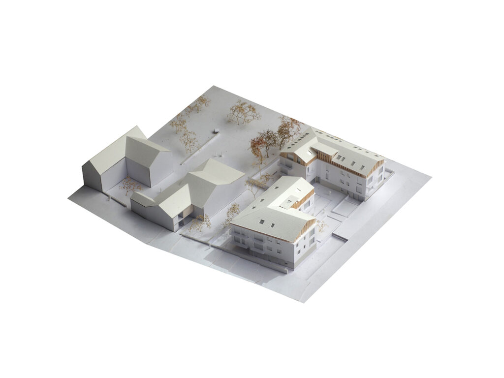 Sans pasticher l’architecture traditionnelle, le projet cherche un enracinement fort dans le tissu villageois.