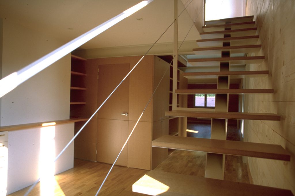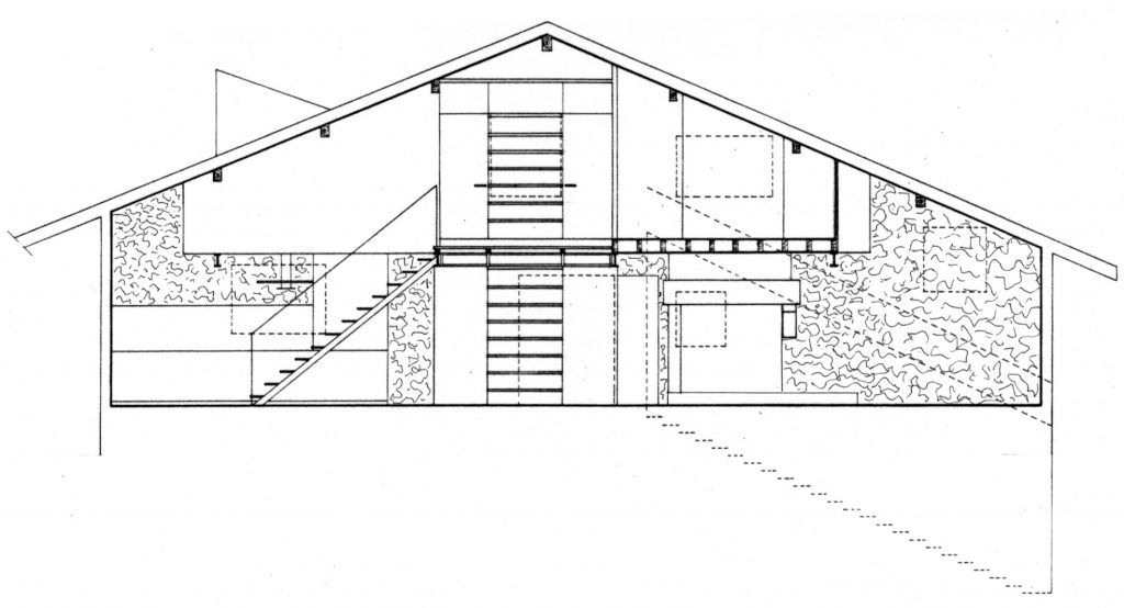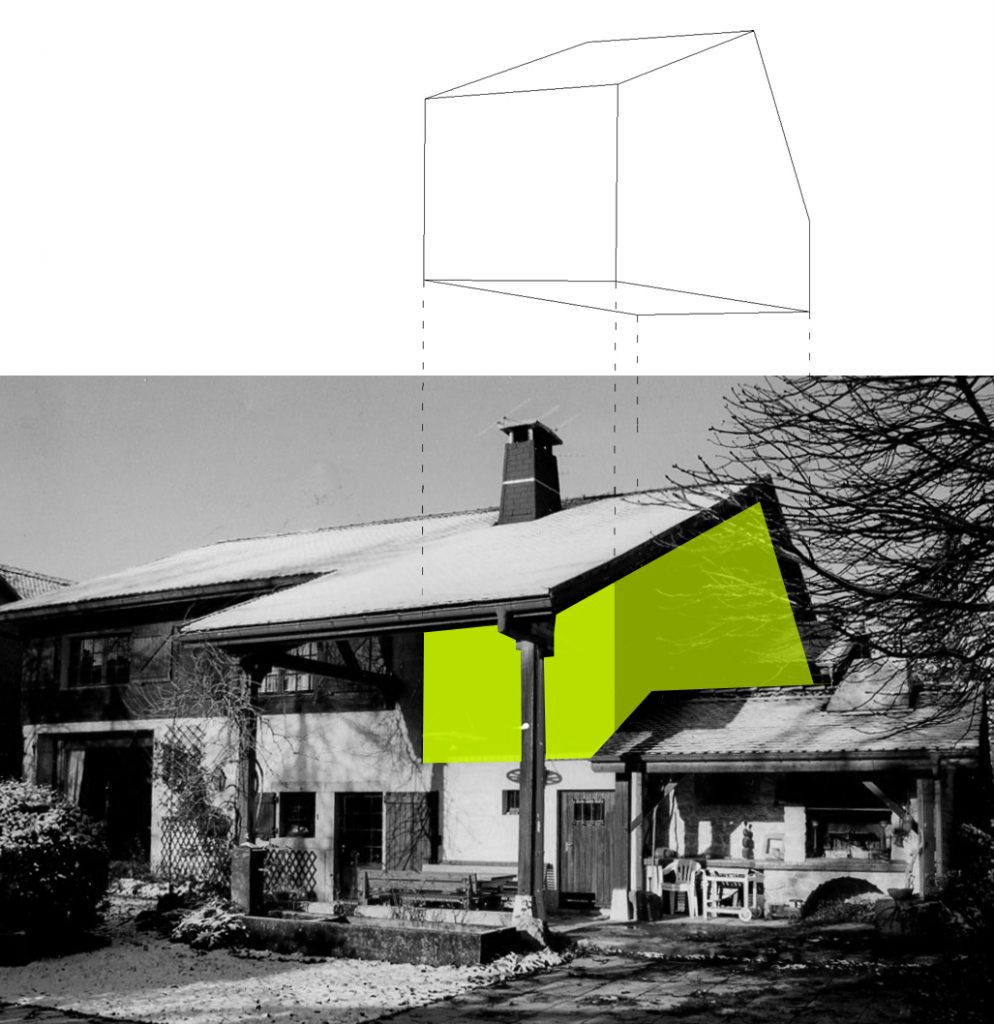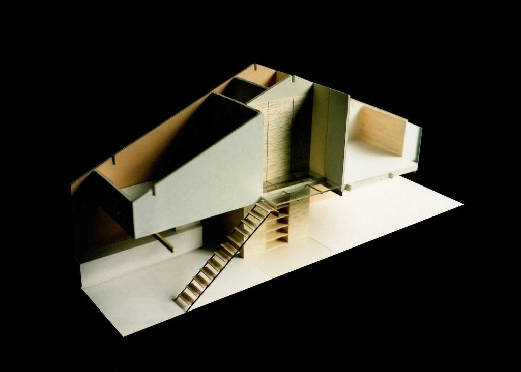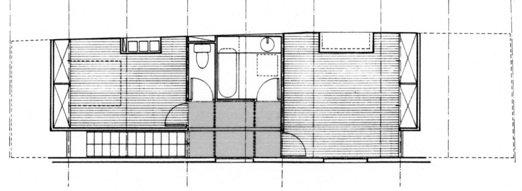 C’est une « tranche » de quatre mètres de largeur sur une quinzaine de mètres de profondeur, dont les façades en bois (structure et bardage) comportent des percements limités.