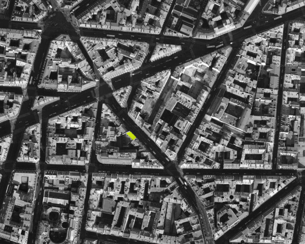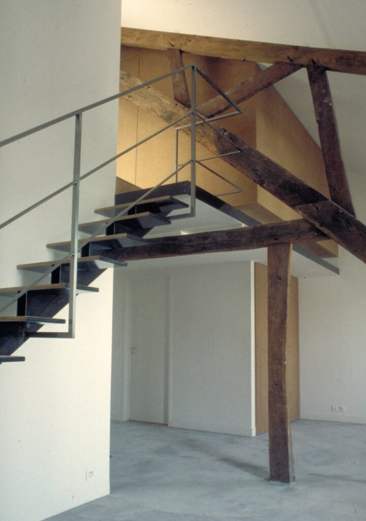 Sous les toits d’un immeuble du XVIII ème siècle, rue Montmartre à Paris, deux niveaux sous les toits sont évidés pour y loger un duplex.