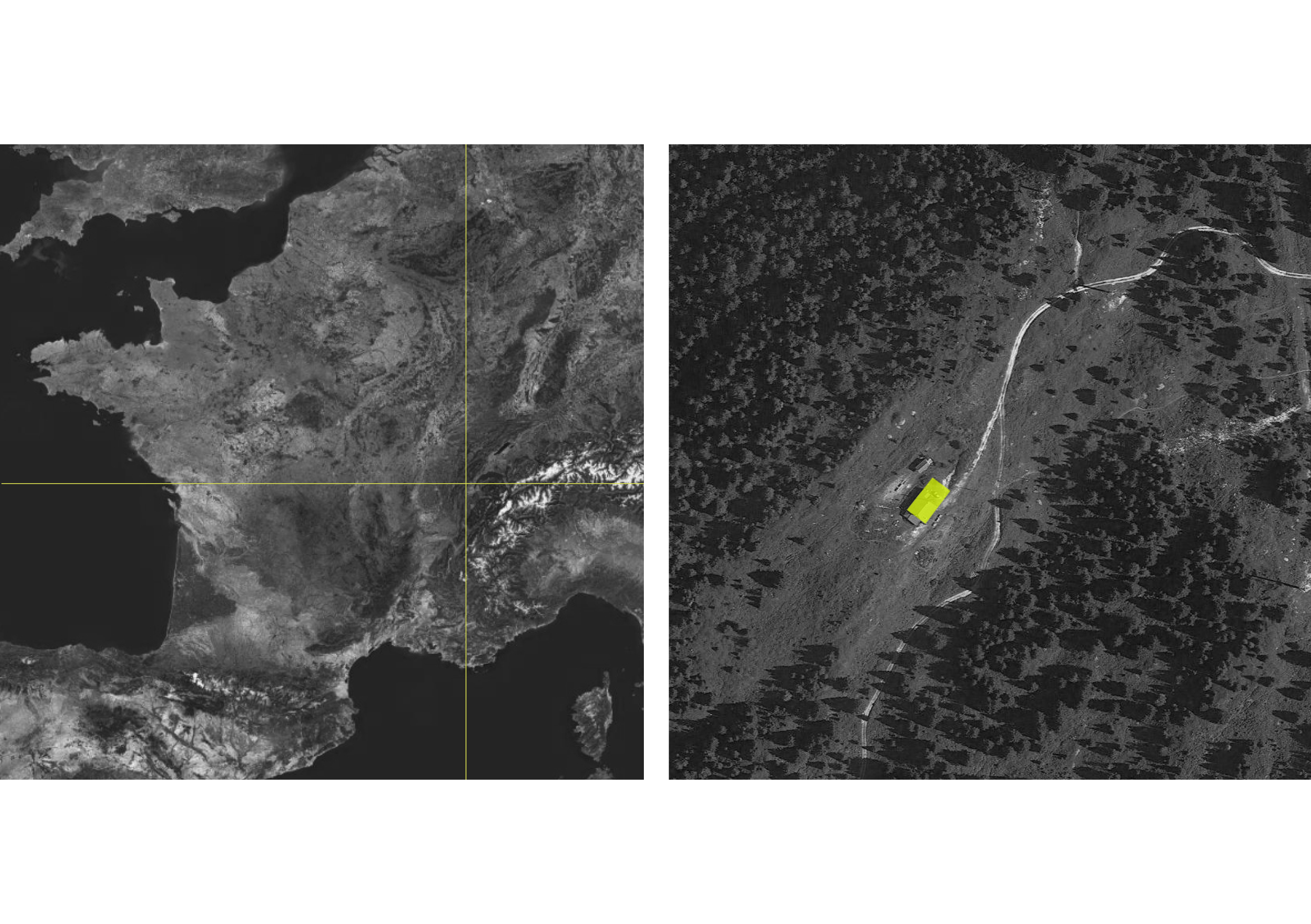 L’inscription du chalet dans le site sont clarifiés et renforcés : le volume principal est débarrassé des adjonctions successives pour mettre en valeur la simplicité du volume principal.