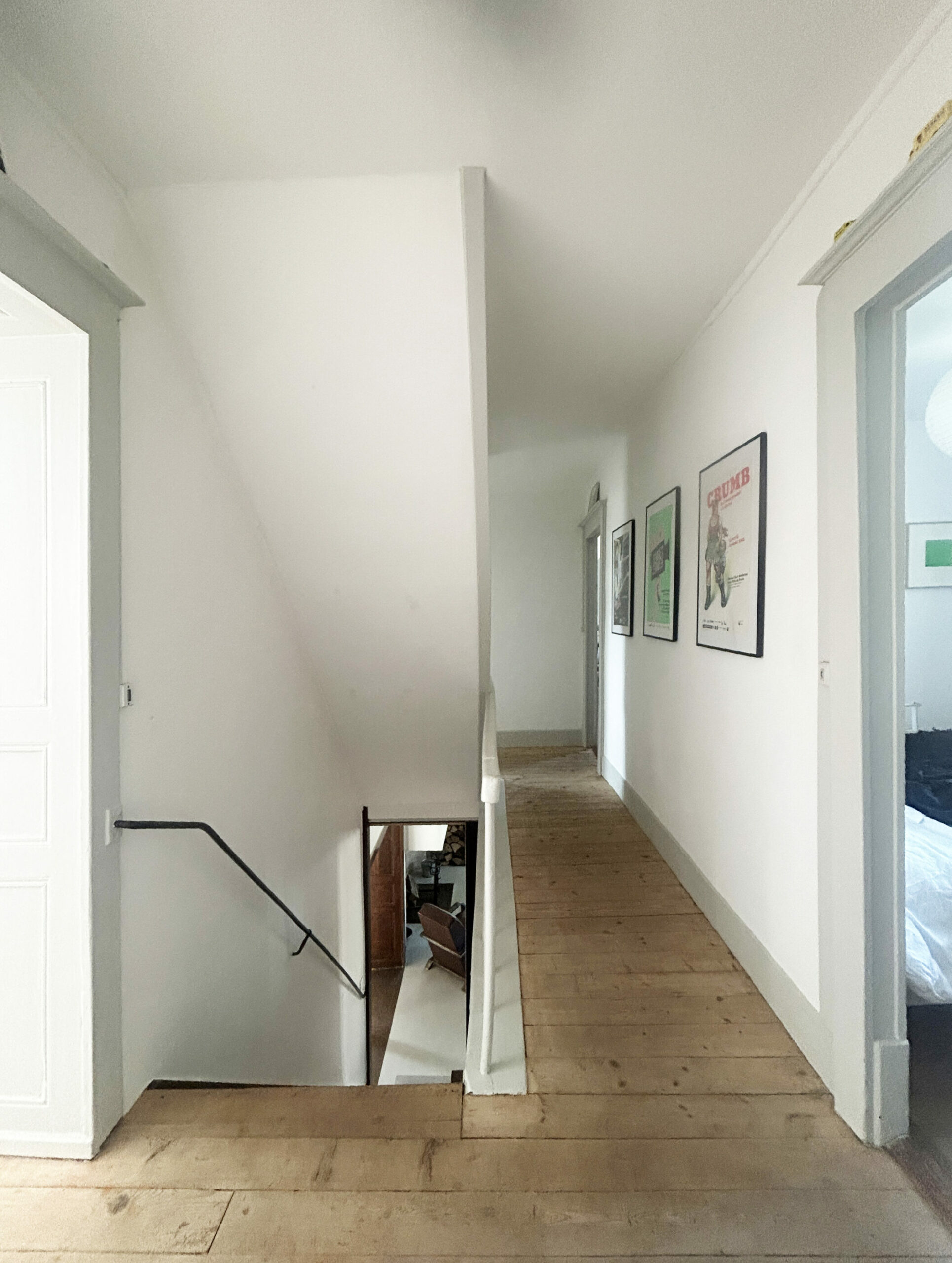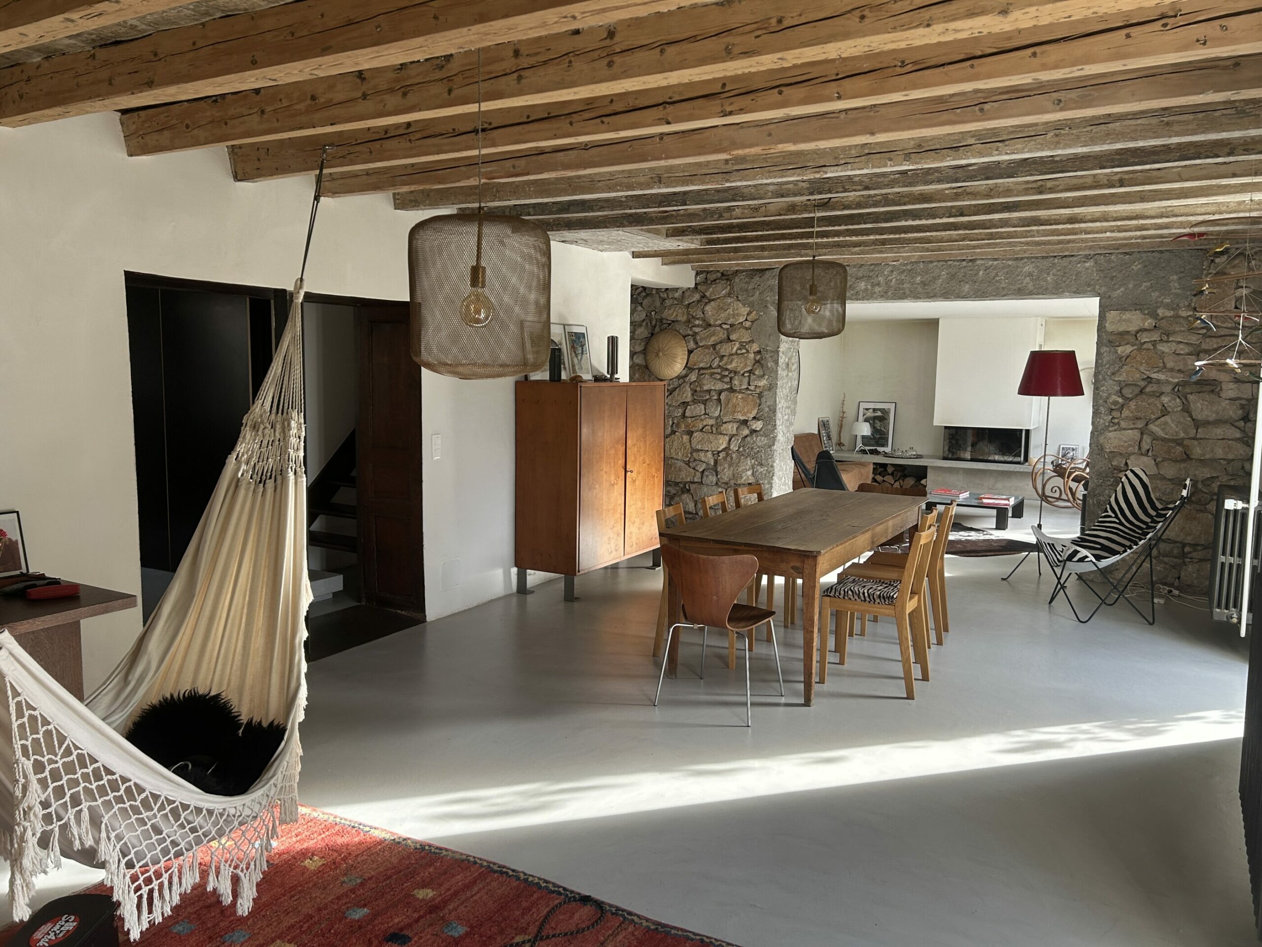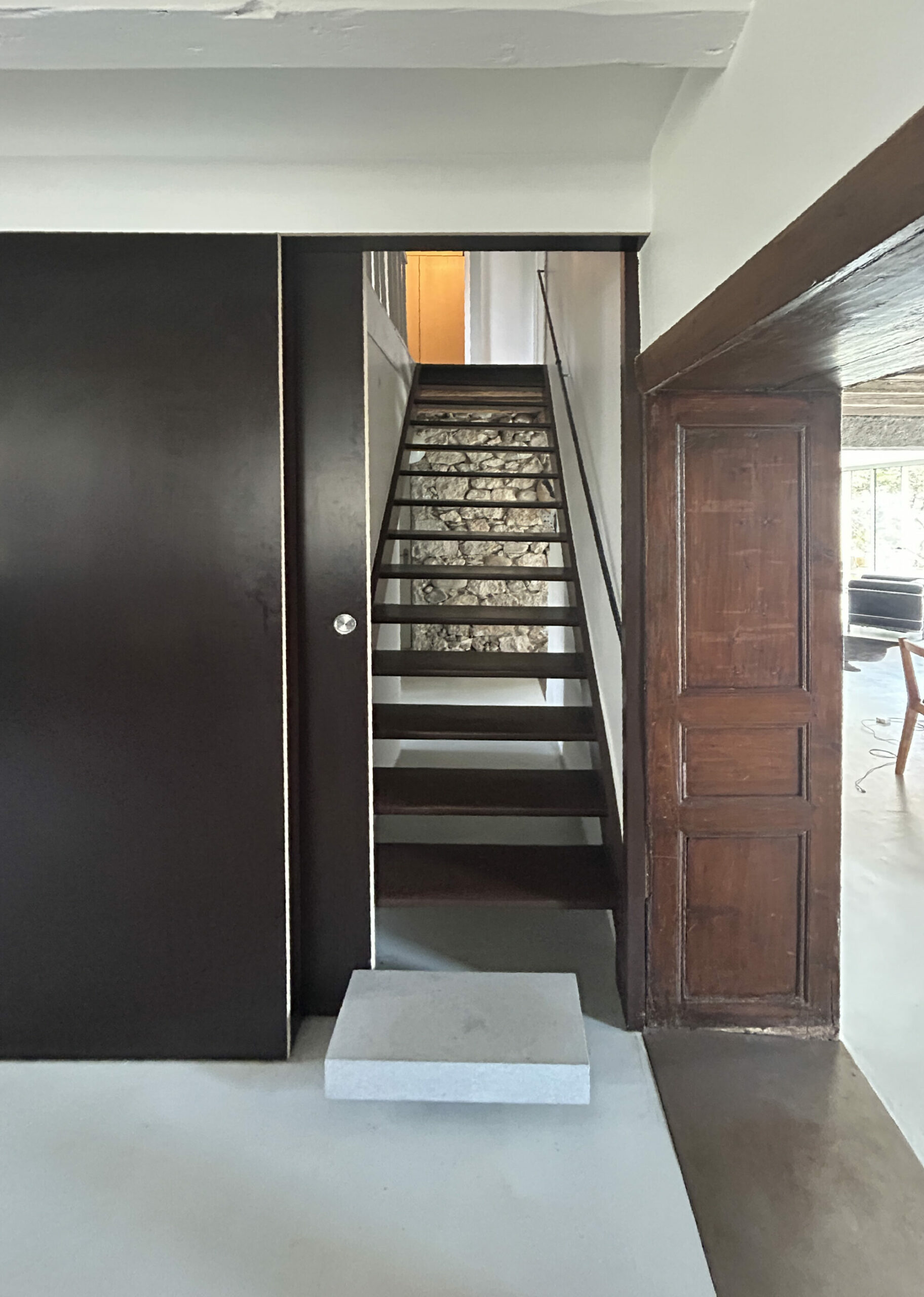 Divers cloisonnements et habillages intérieurs avaient progressivement transformé les espaces. Un travail de purge mené selon une approche « démolition/observation » a permis de révéler la structure d’origine et de redonner de la lisibilité aux volumes. Un mur de pierre, percé lors de l’extension, marque désormais clairement la séparation entre la maison ancienne et sa partie plus récente.