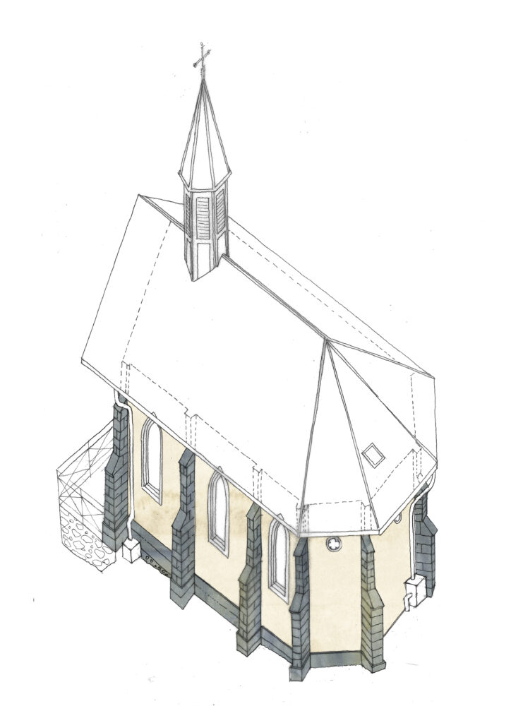Constituée d’une simple nef sur deux travées et d’un chœur à deux faces sur base hexagonale, l’édifice à une taille relativement importante pour une chapelle.